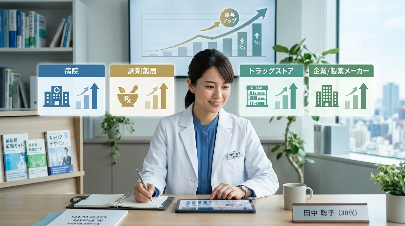 この記事では、30代薬剤師が年収アップ転職を成功させるために、どの職場を選ぶべきか、年収が上がる人・下がる人の違い、失敗を避ける判断基準をわかりやすく整理します。